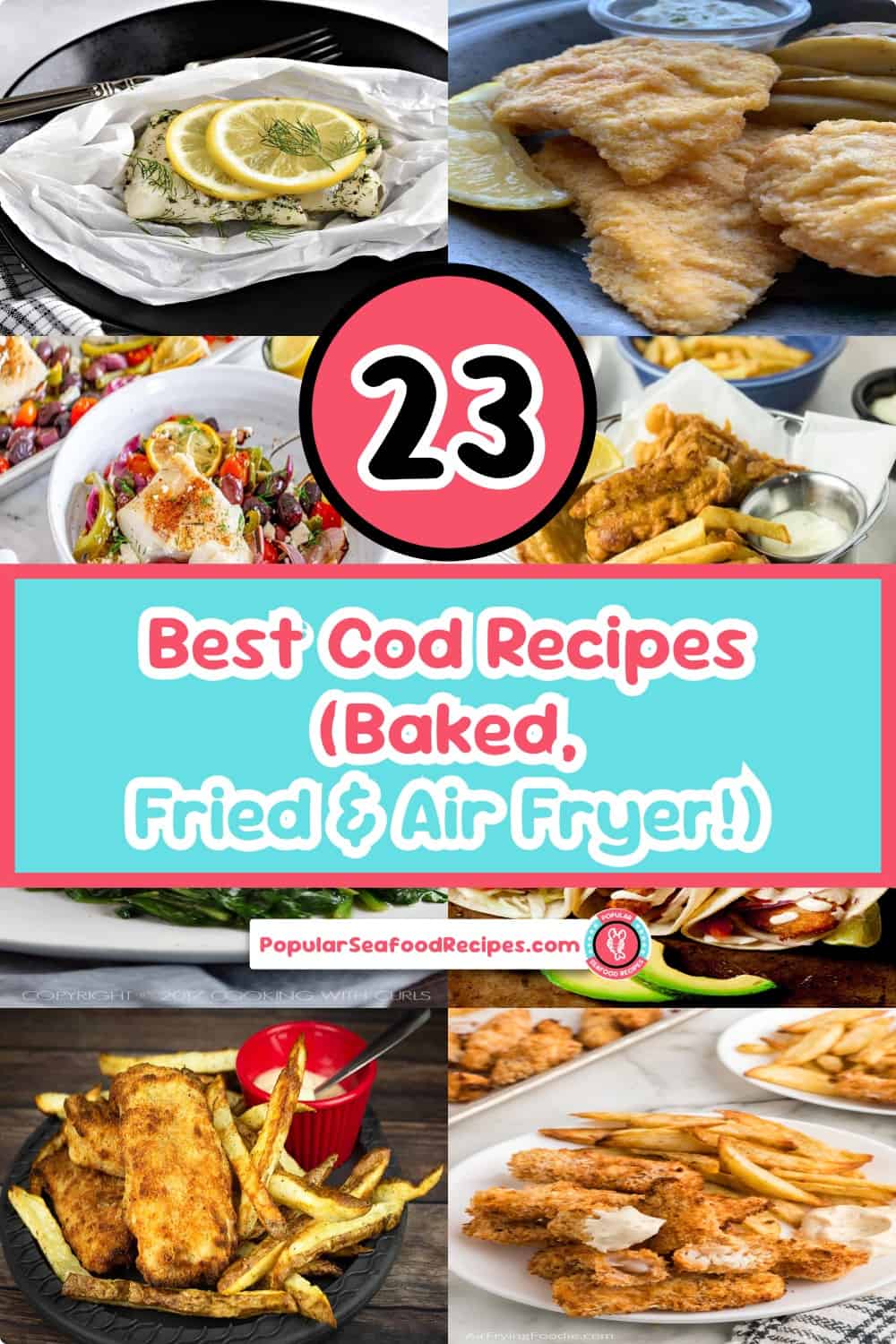 This collection of 23 cod recipes takes you through every cooking method imaginable, from classic comfort foods like Beer Battered Fish and Chips and Air Fryer Fish & Chips to globally-inspired dishes like Coconut Tomato Curry with Cod and Chinese Fish Congee. You'll find multiple takes on Baja-style fish tacos, fun copycat versions of restaurant favorites, elegant parchment-wrapped options, and super quick solutions like Air Fryer Frozen Cod for busy weeknights.